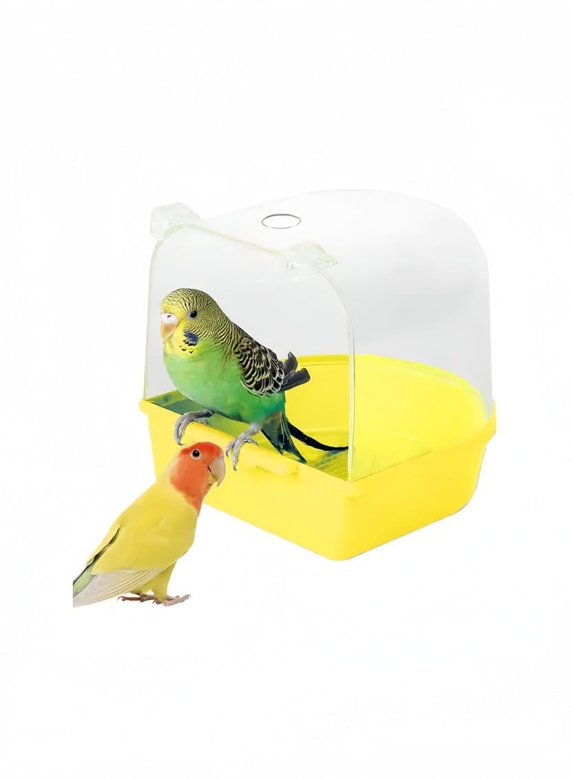 Bird Bathtub for Cage – Transparent Cover | Blue & Yellow