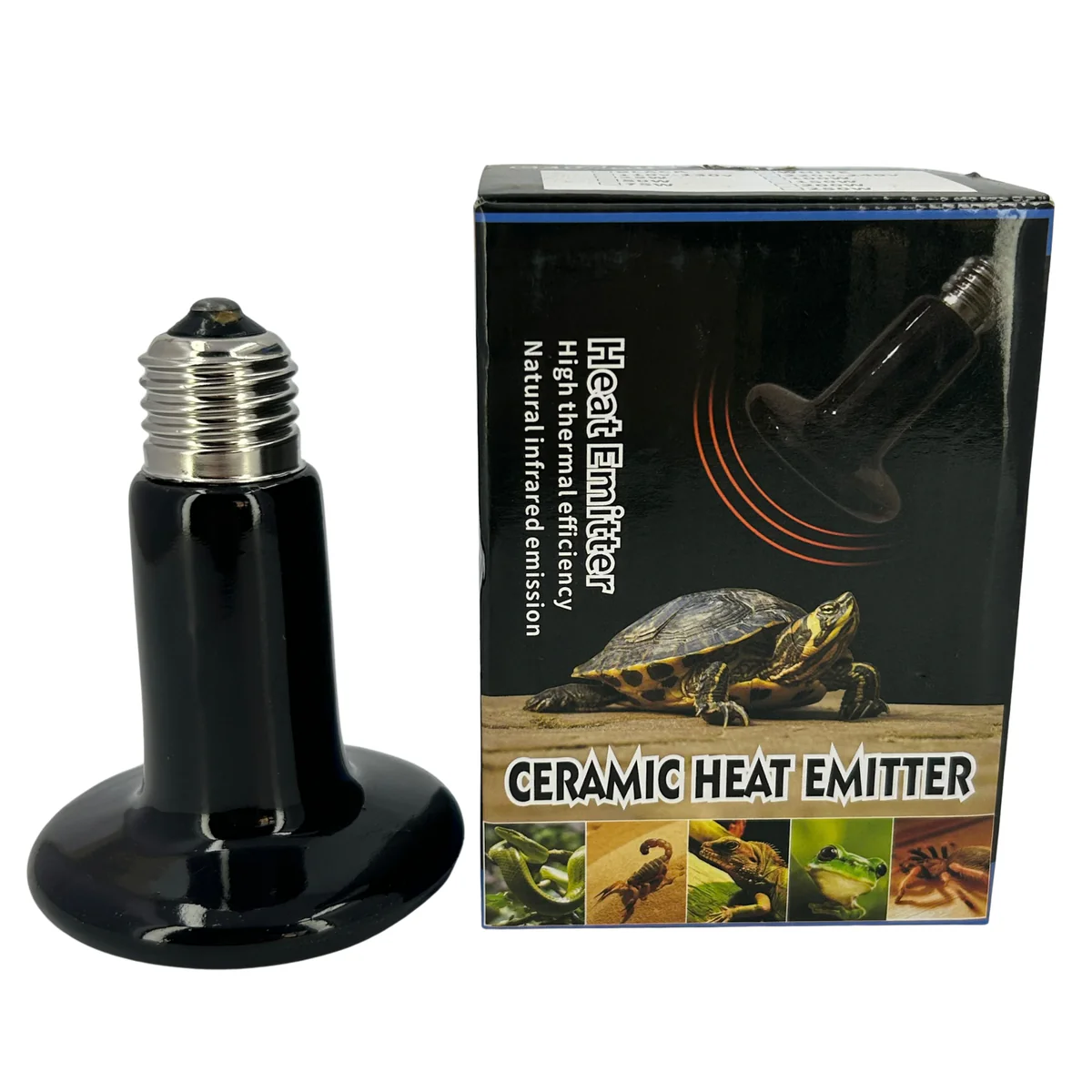 The Ceramic Heating Bulb is available in 100 W, 150 W, and 200 W models to suit different enclosure sizes and temperature needs for birds and animals.