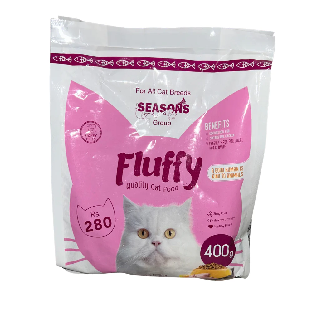 - Fluffy Cat Food 1 KGis specially formulated to support your feline friend’s health and happiness. Packed with essential nutrients, this premium blend promotes a shiny coat, healthy digestion, and sustained energy throughout the day. Each serving delivers balanced nutrition tailored to cats’ unique dietary needs. Whether your cat is playful or relaxed, Fluffy Cat Food provides the wholesome ingredients they deserve.