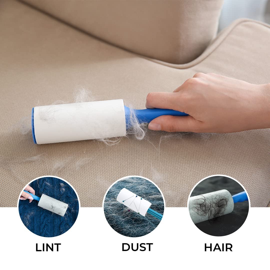 Strong adhesive sheets easily lift fur, hair, dust, and small debris from fabric surfaces.